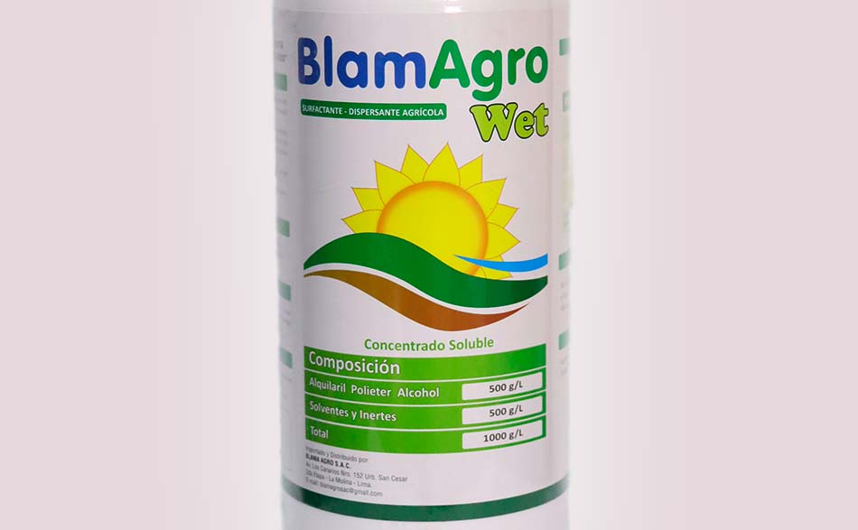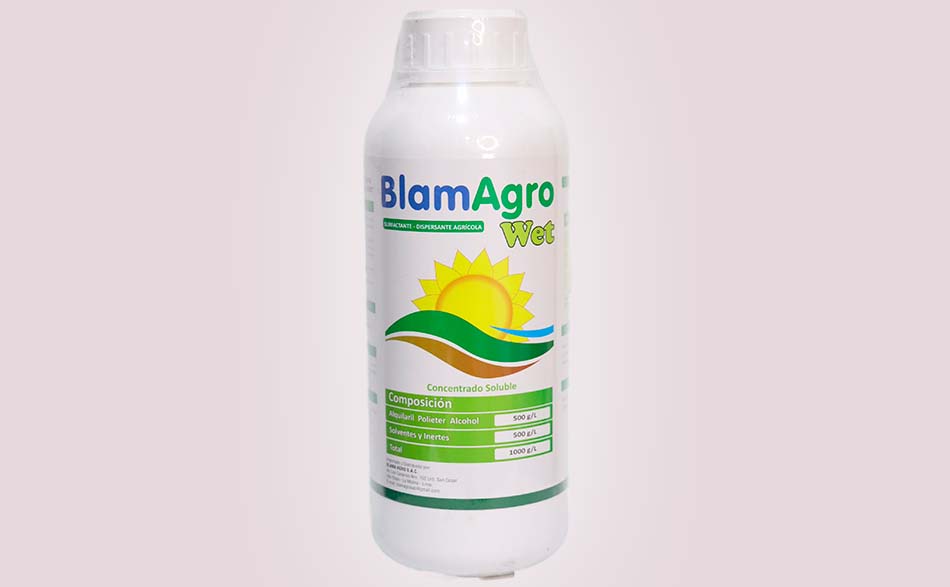 BlamAgro Wet, surfactante agrícola con buenas propiedades de ademas de adherencia facilitando la tensión superficial del la humectante y dispersante de mezclas homogéneas.